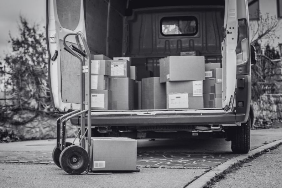 Furgonetas y vehículos comerciales para transportar herramientas y materiales.