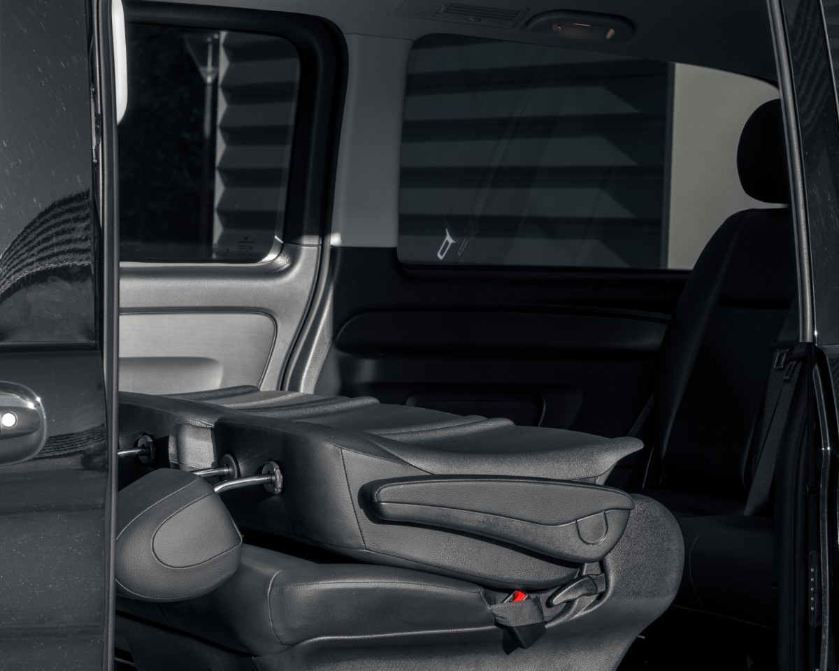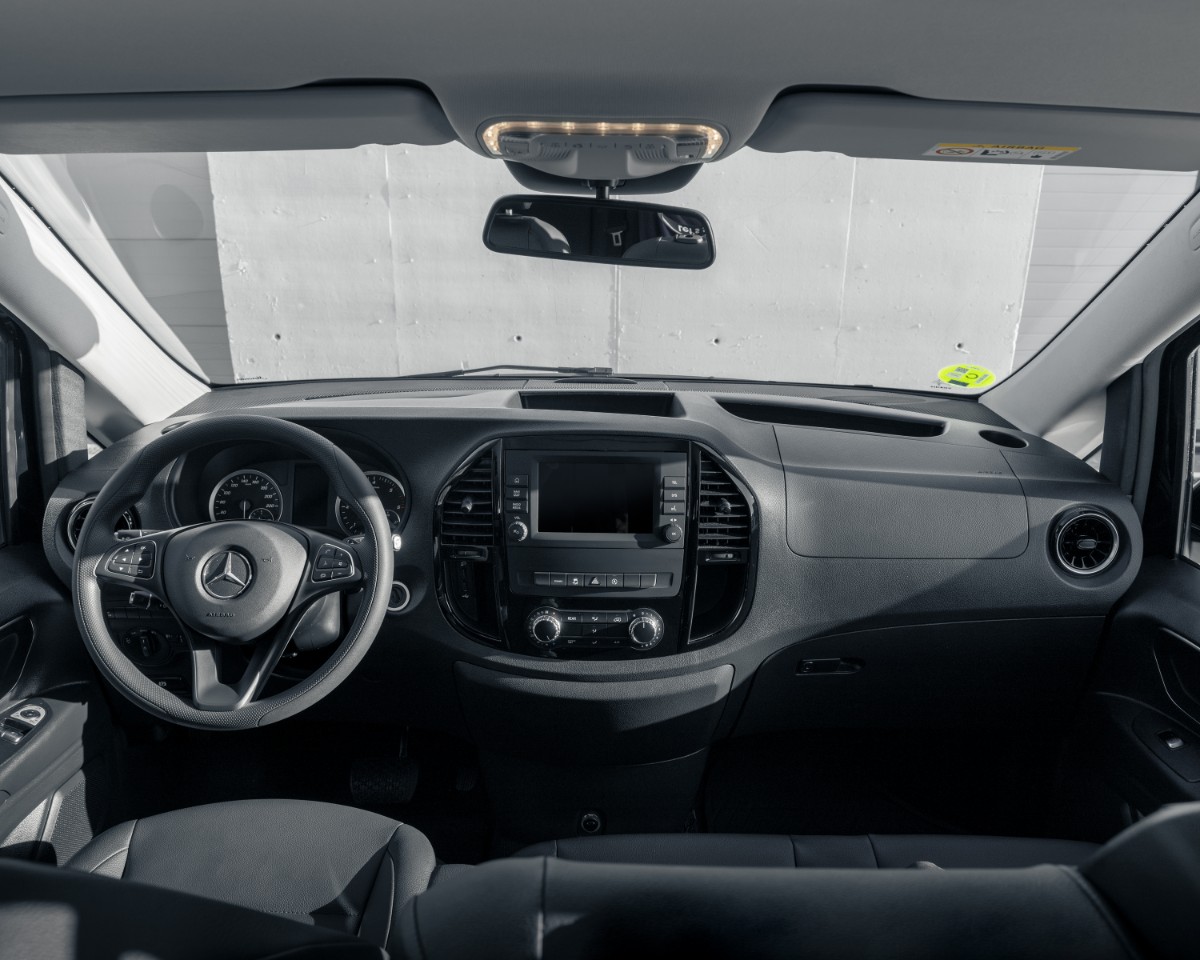 La Mercedes Vito Select ofrece versatilidad, confort y eficiencia en un formato ideal para el transporte de hasta 8 pasajeros. Con un interior espacioso y flexible, se adapta a múltiples necesidades profesionales o familiares.